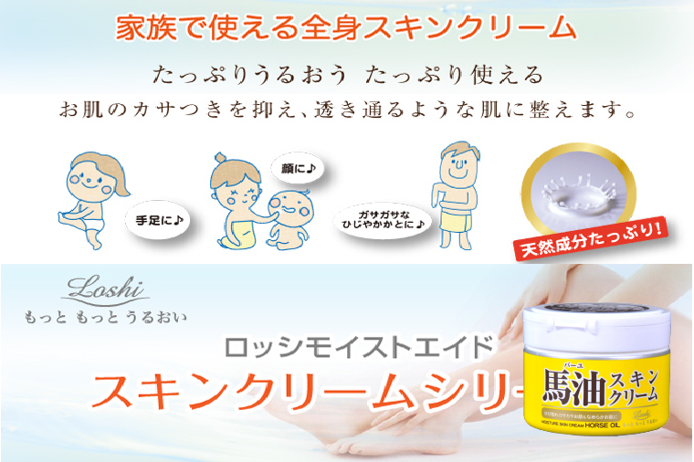秋冬到来,天气开始干燥,你的皮肤是否感到痕痒,甚至出现细纹和龟裂?日本北海道Cosmetex Roland LOSHI马油护肤霜采用与人体融合度极高的马油脂肪提炼而成,含有多项天然植物精华与丰富营养素,并加入Q10 透明质酸骨胶原成份,润而不腻,能短时间内渗透肌肤细胞,滋润深层肌肤,防止干燥龟裂,并有防皱抗衰老的作用。而迷迭香、笔头菜、啤酒花、松叶、柠檬等天然植物萃取精华,更能帮助缩小毛孔,令肌肤回复柔软细滑的状态。